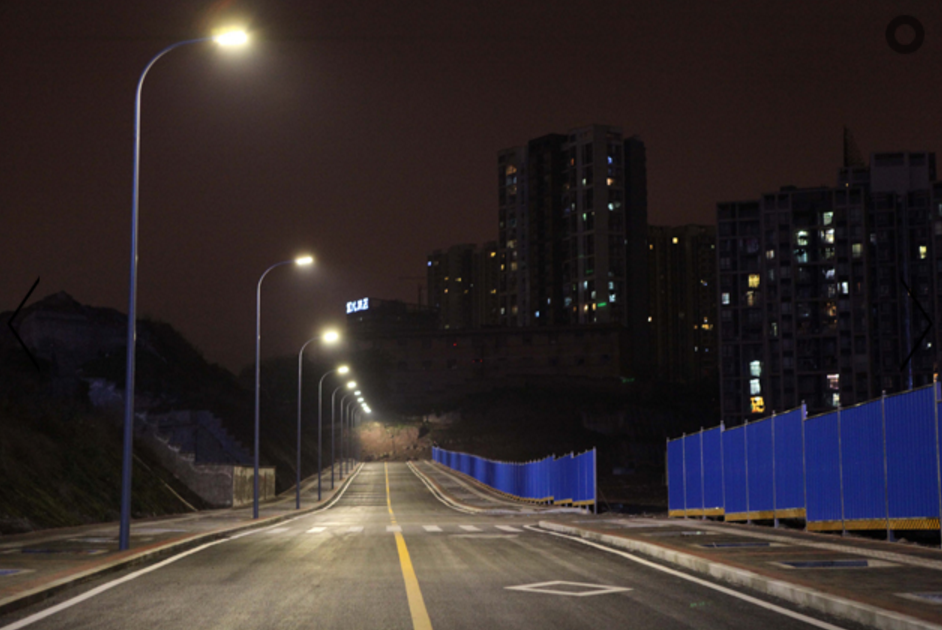 重慶綠色科技開發(fā)(集團(tuán))有限公司在重慶市渝中區(qū)虎踞路實(shí)施了“十惠牌”60W LED智能路燈綠色照明工程(單側(cè)布燈),主要具有路面燈光清晰度高(顯指70)、均勻度好、光效高等特點(diǎn),該燈具性能指標(biāo)均領(lǐng)先全國(guó)同類產(chǎn)品,采用我司自主研發(fā)的專利技術(shù)“互聯(lián)網(wǎng)+多色溫LED路燈、隧道燈六遙(多色溫、遙調(diào)、遙測(cè)、遙控、遙視、遙信)控制系統(tǒng)”(專利號(hào):2015204938054)遙控可實(shí)現(xiàn)智能控制。本產(chǎn)品是我司利用多項(xiàng)自主專利技術(shù)(專利號(hào):201320842388、201320028126、2015204938054)研發(fā)、制造的LED智能路燈產(chǎn)品,并已獲得“重慶市高新技術(shù)產(chǎn)品”、“重慶市市政行業(yè)新技術(shù)認(rèn)證”。案例實(shí)景照片展示如下(2015年01月25日通過竣工驗(yàn)收):