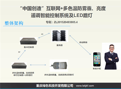 多色溫防霧霾、亮度遙調新一代LED路燈應用智能制造技術主要包括 “智能集中控制器”、“智能終端多色溫防霧霾、亮度可調控制器”、“多色溫防霧霾、亮度可調LED照明路燈”等硬件和“智能軟件編程”、“自動感應PM2.5傳感技術”、“溫度傳感技術”等新一代應用智能制造技術,同時兼容其它路燈遠程智能控制系統功能。專利技術《互聯網+多色溫LED路燈、隧道燈六遙控制系統(ZL201520493805.4)》經科技查新已獲得《科技查新報告》(報告編號:J201508016831),證明了是“中國創造”LED路燈應用智能制造獨一無二的先進技術;該技術已列入《2015年度重慶市中小企業科技成果轉化項目》(渝中小企〔2015〕188號),并申請了LED智能控制技術重慶市工程研究中心【渝發改技〔2015〕1865號】。