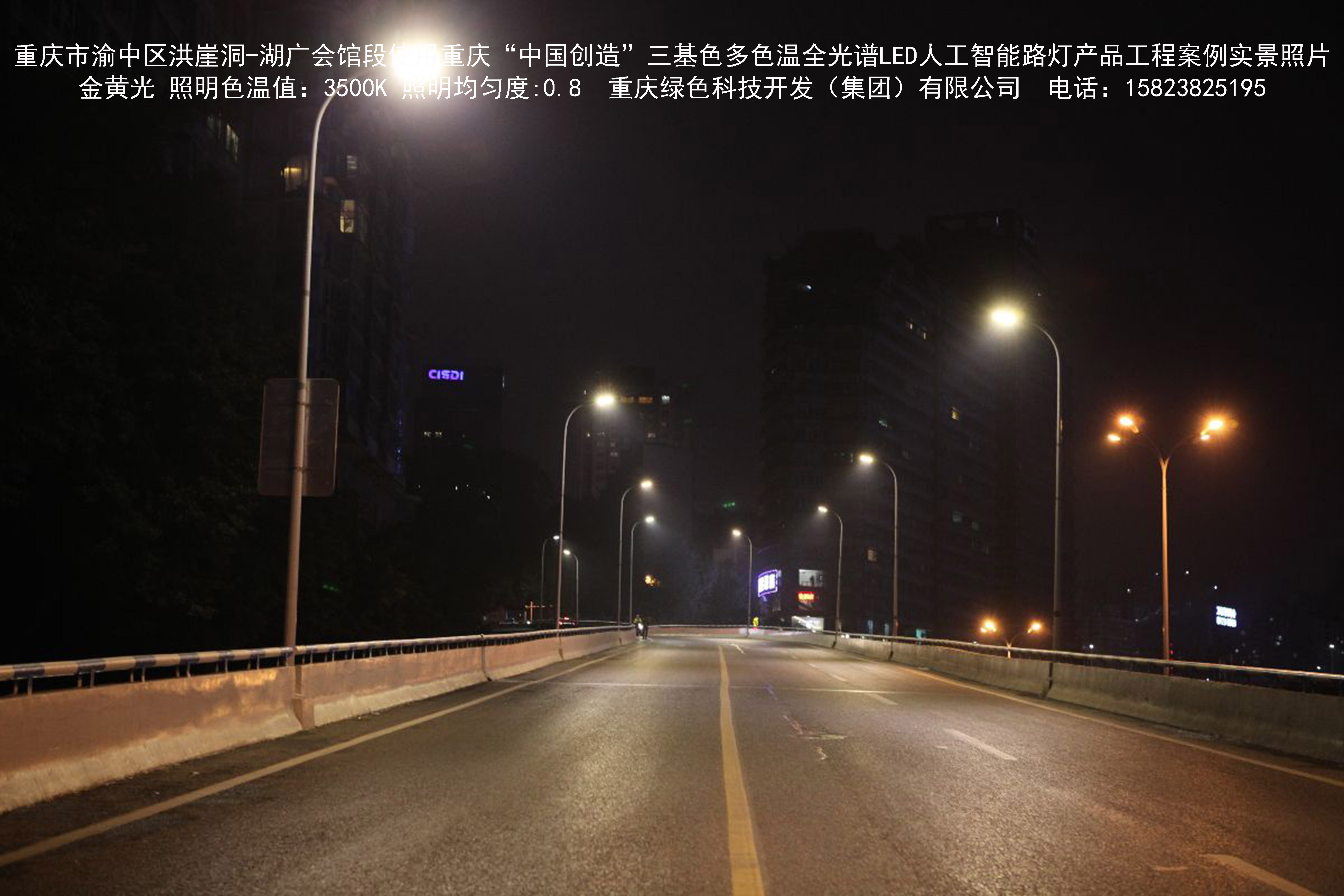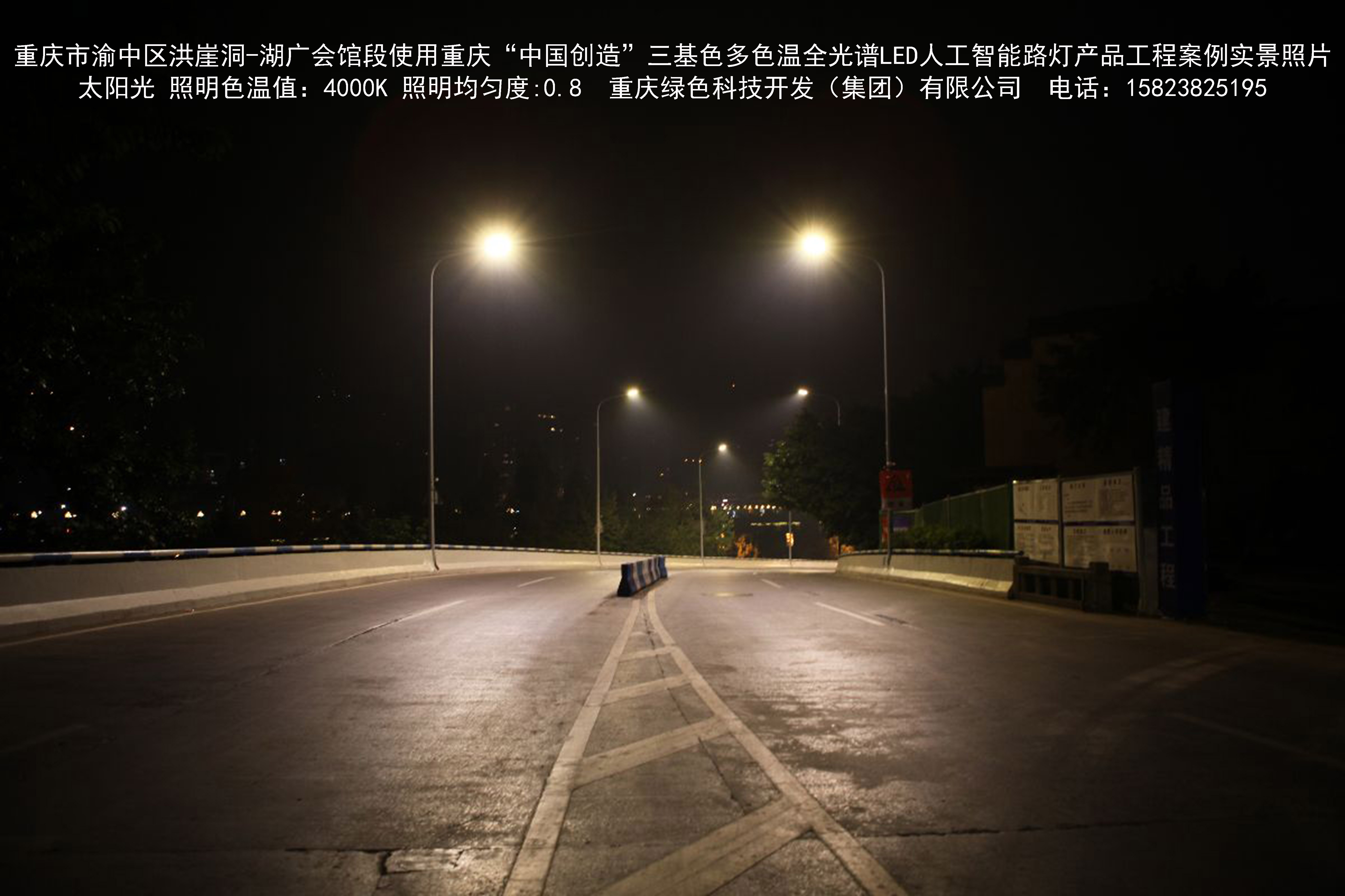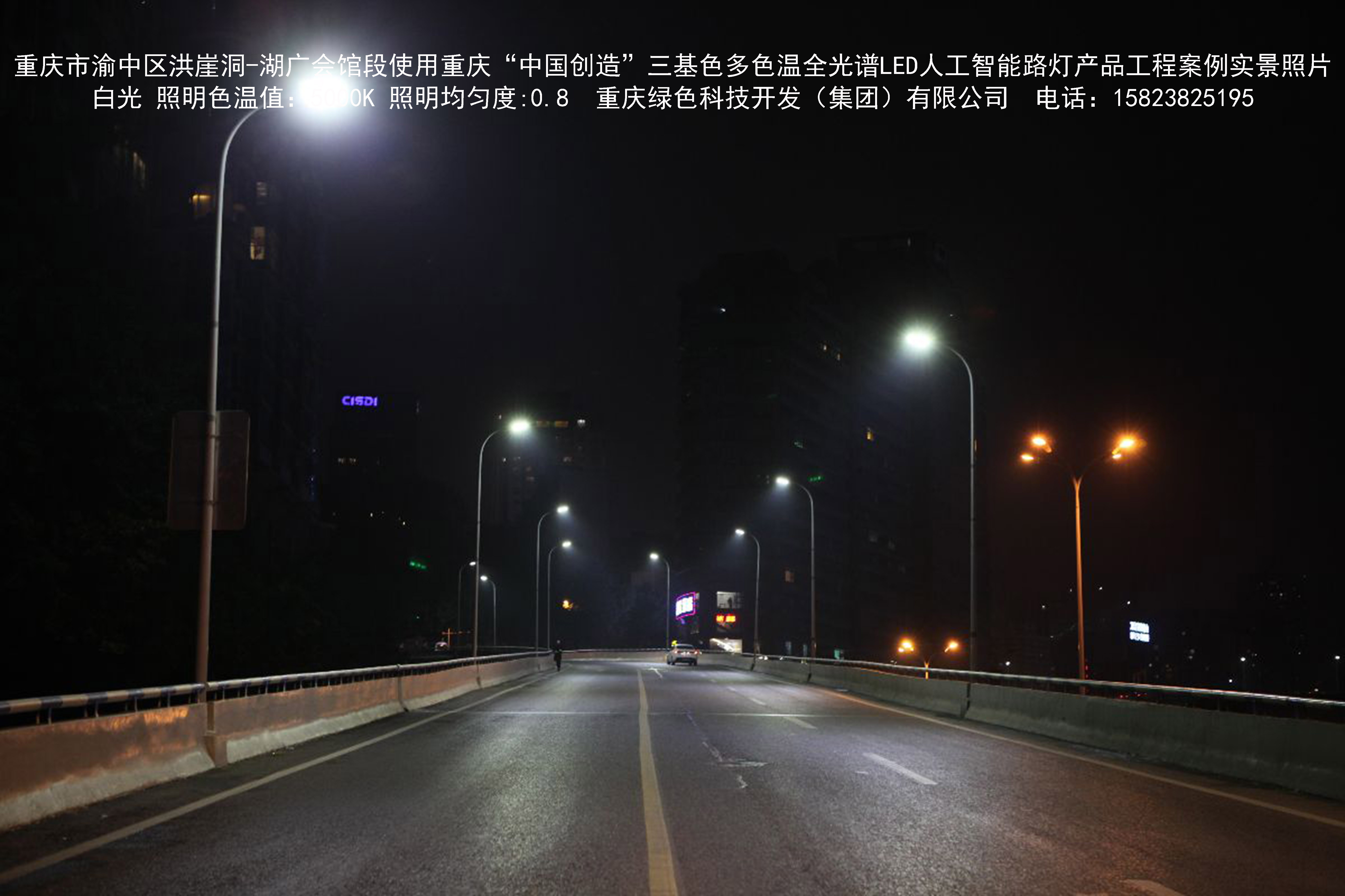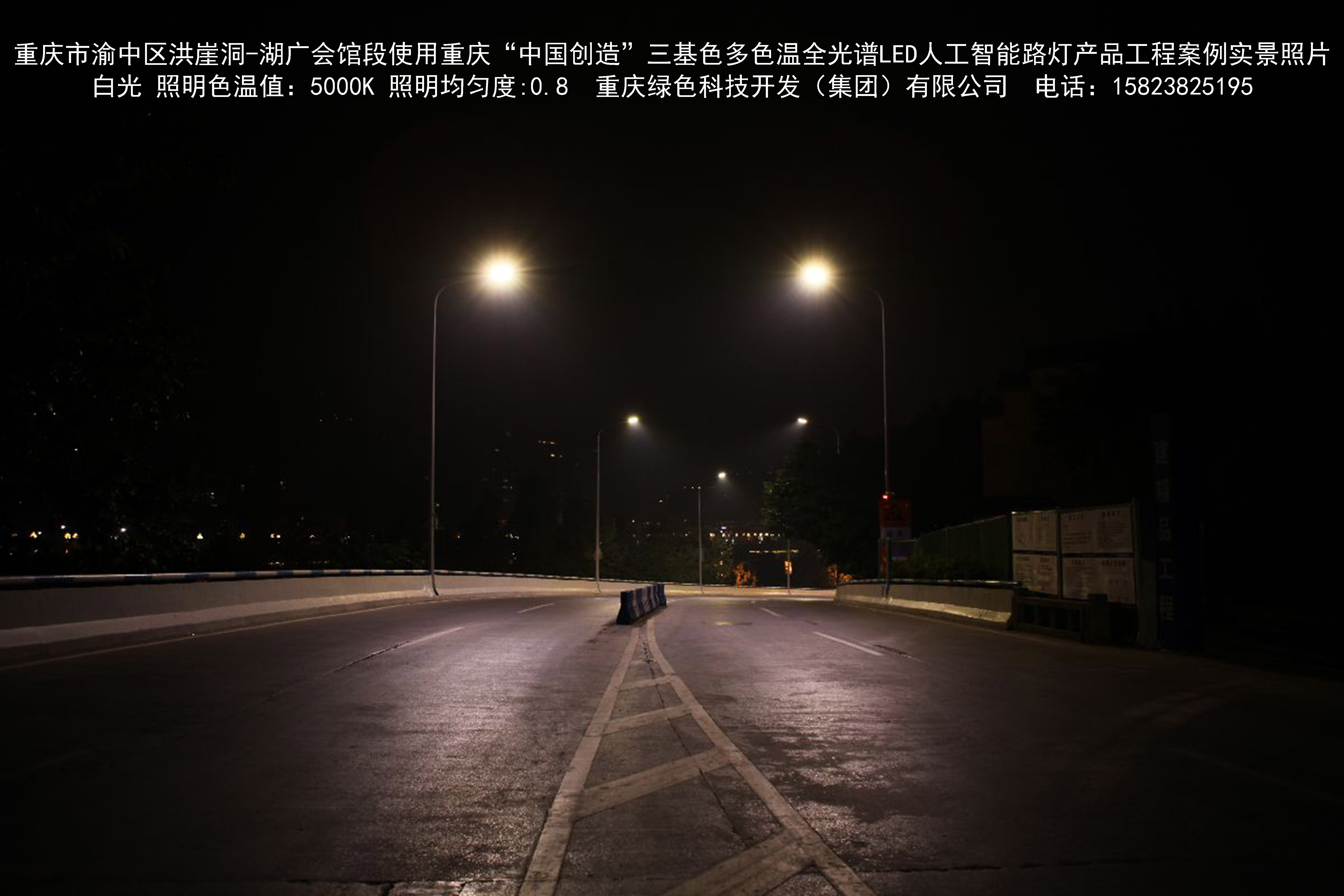 2018年12月,重慶市城市照明管理局使用我司自主研發制造的重慶“中國創造”三基色多色溫全光譜LED人工智能路燈系列產品,實施了渝中區市政設施品質提升工程。該工程已全面竣工。工程實施后,極大地提高了城市照明清晰度、燈光均勻度、舒適度。通過智能終端實現單燈感知、線纜防盜報警,與原高壓鈉燈相比,節能率60%以上,有效解決了關閉控制回路或間隔關燈方式造成的照明暗區,確保行人和車輛通行的安全,實現城市路燈照明系統的智能化管理,推進了智慧城市建設。
