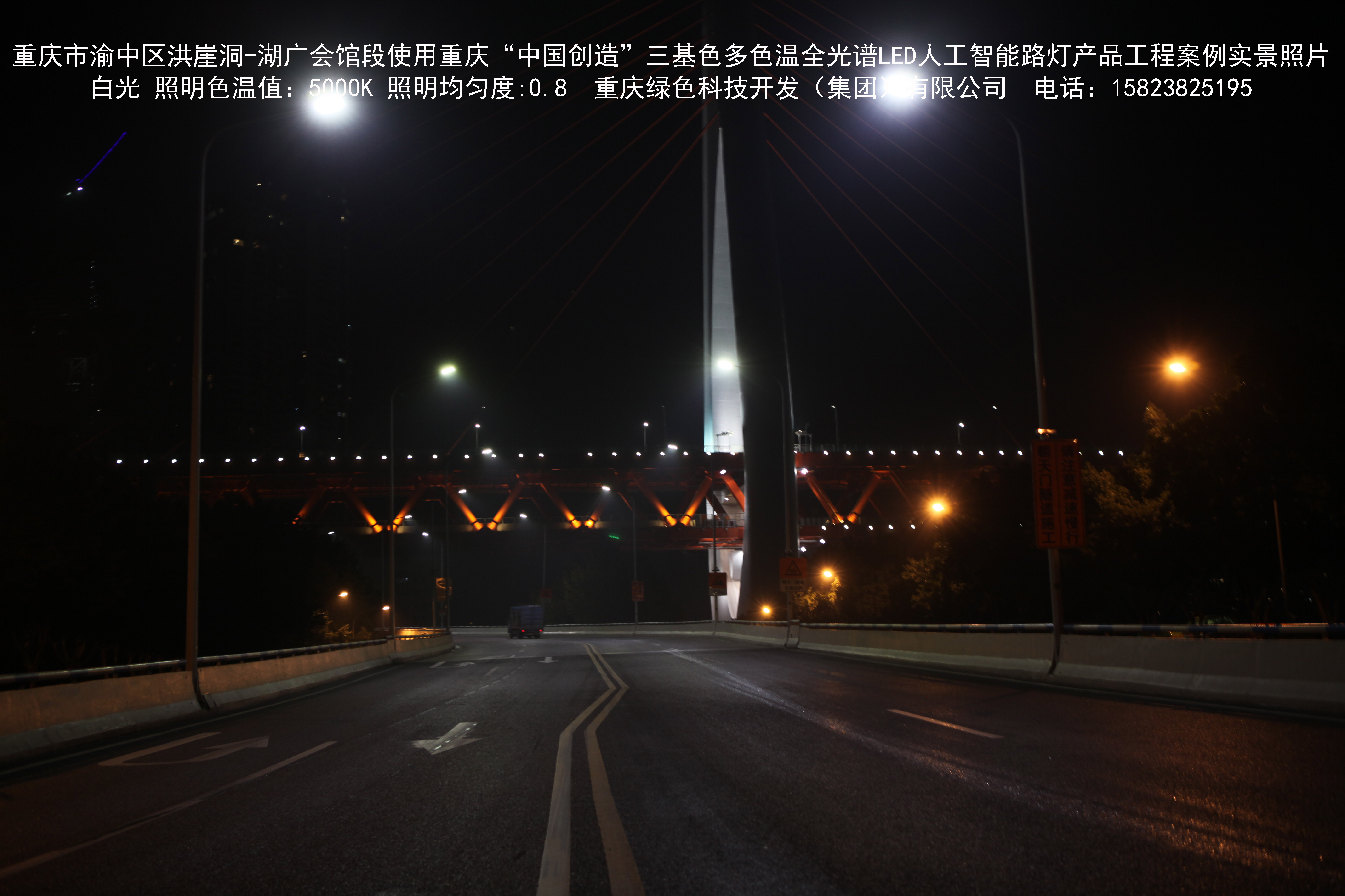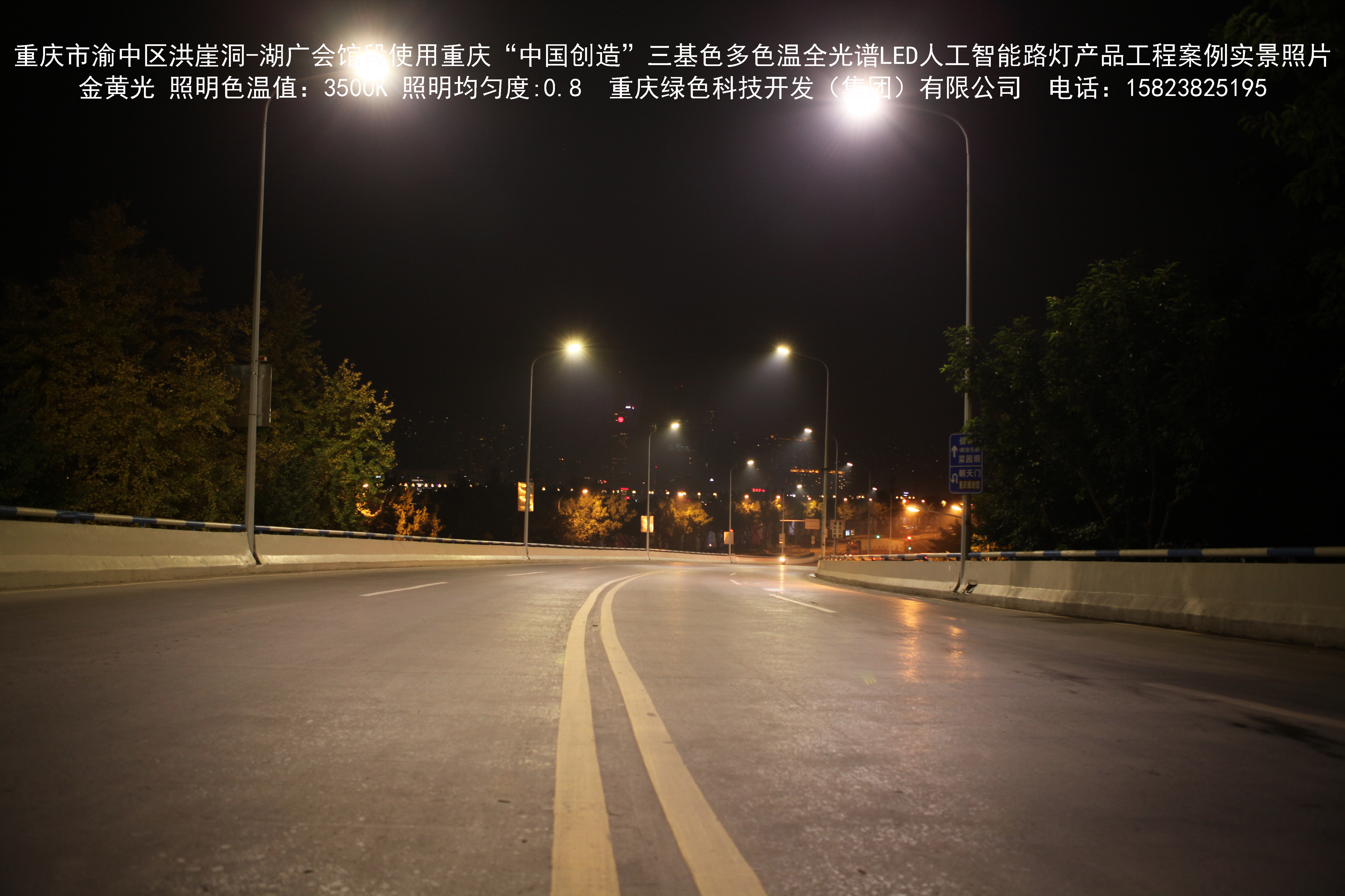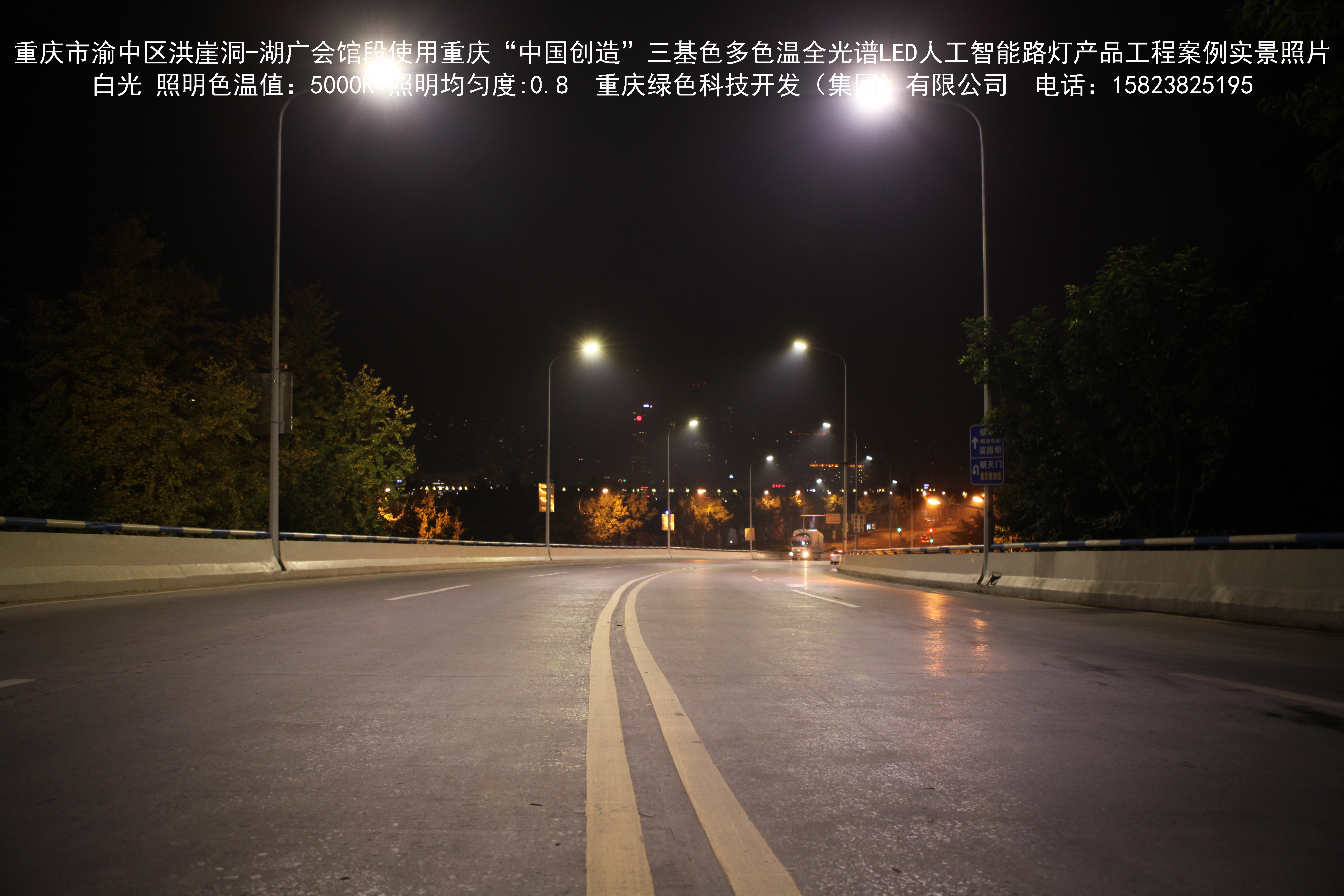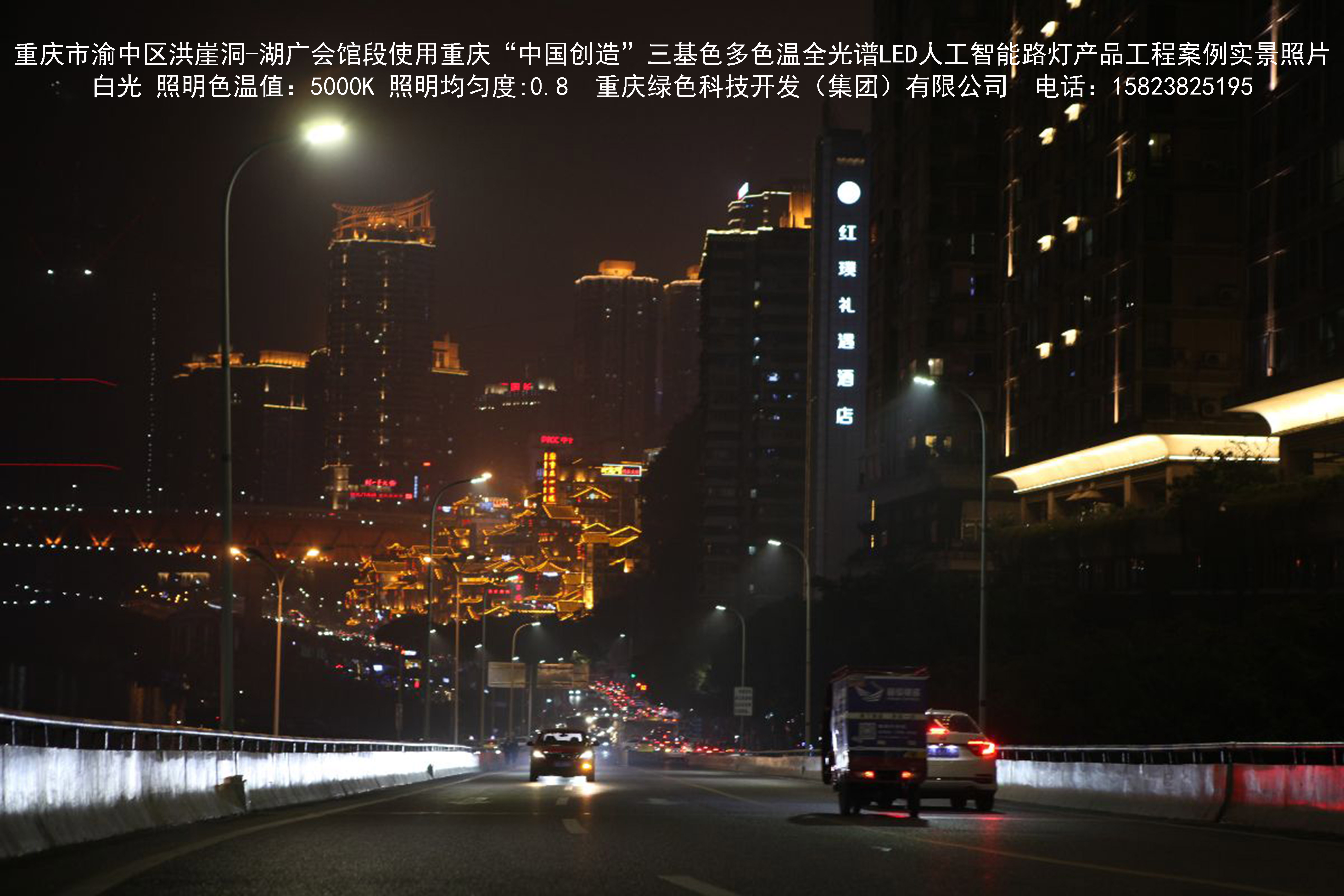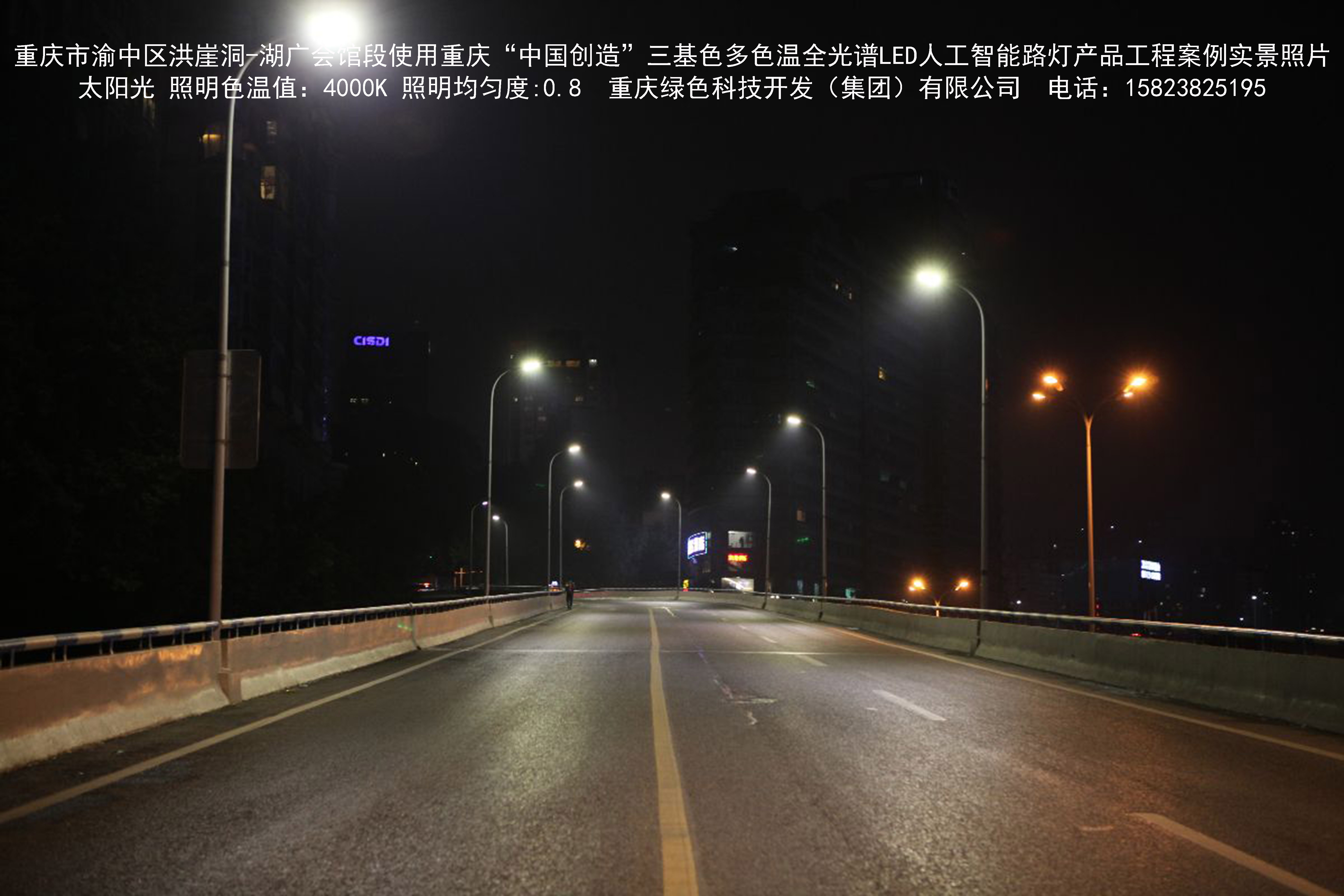 2018年12月,重慶市城市照明管理局使用我司自主研發制造的重慶“中國創造”三基色多色溫全光譜LED人工智能路燈系列產品,實施了渝中區市政設施品質提升工程。該工程已全面竣工。工程實施后,極大地提高了城市照明清晰度、燈光均勻度、舒適度。通過智能終端實現單燈感知、線纜防盜報警,與原高壓鈉燈相比,節能率60%以上,有效解決了關閉控制回路或間隔關燈方式造成的照明暗區,確保行人和車輛通行的安全,實現城市路燈照明系統的智能化管理,推進了智慧城市建設。