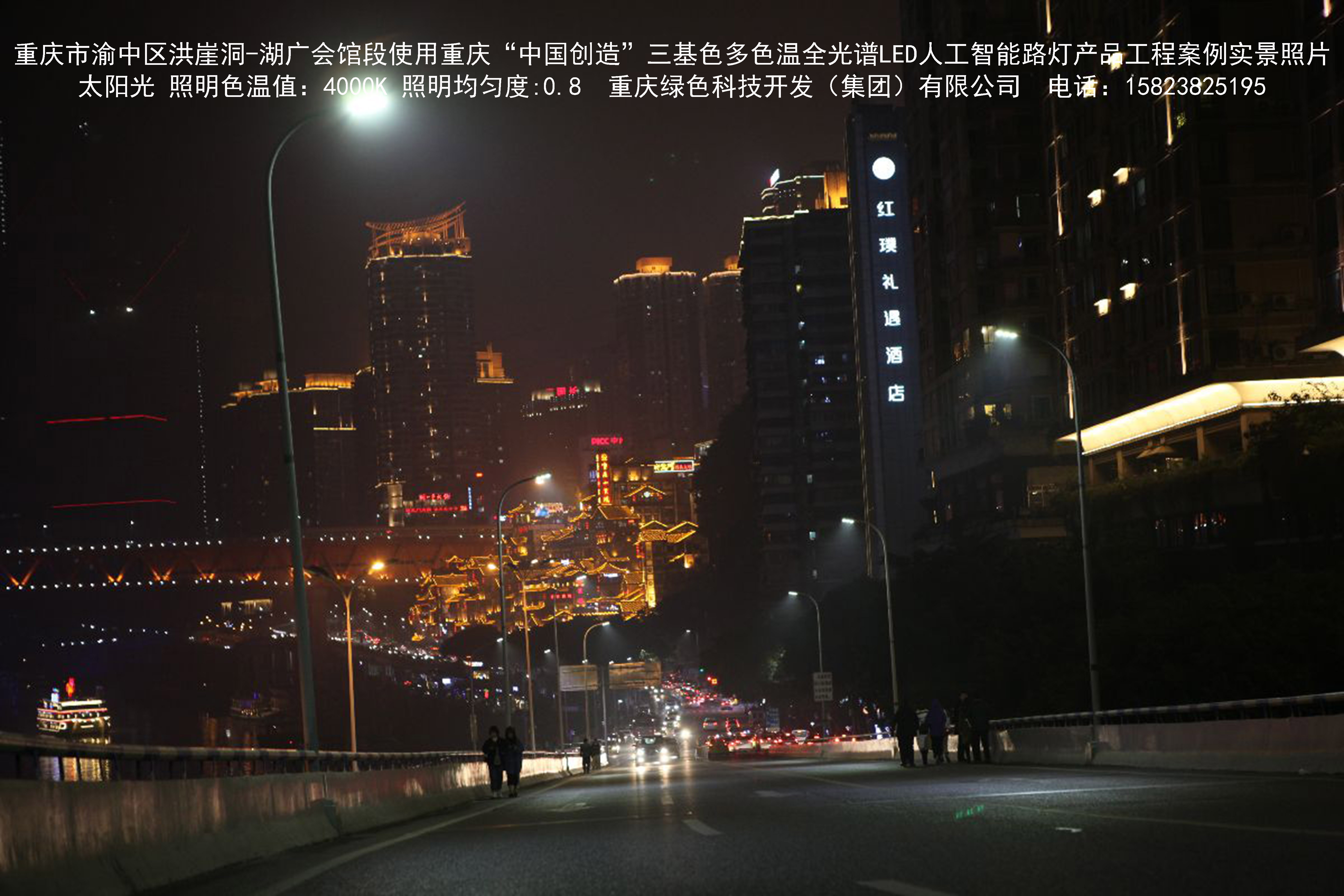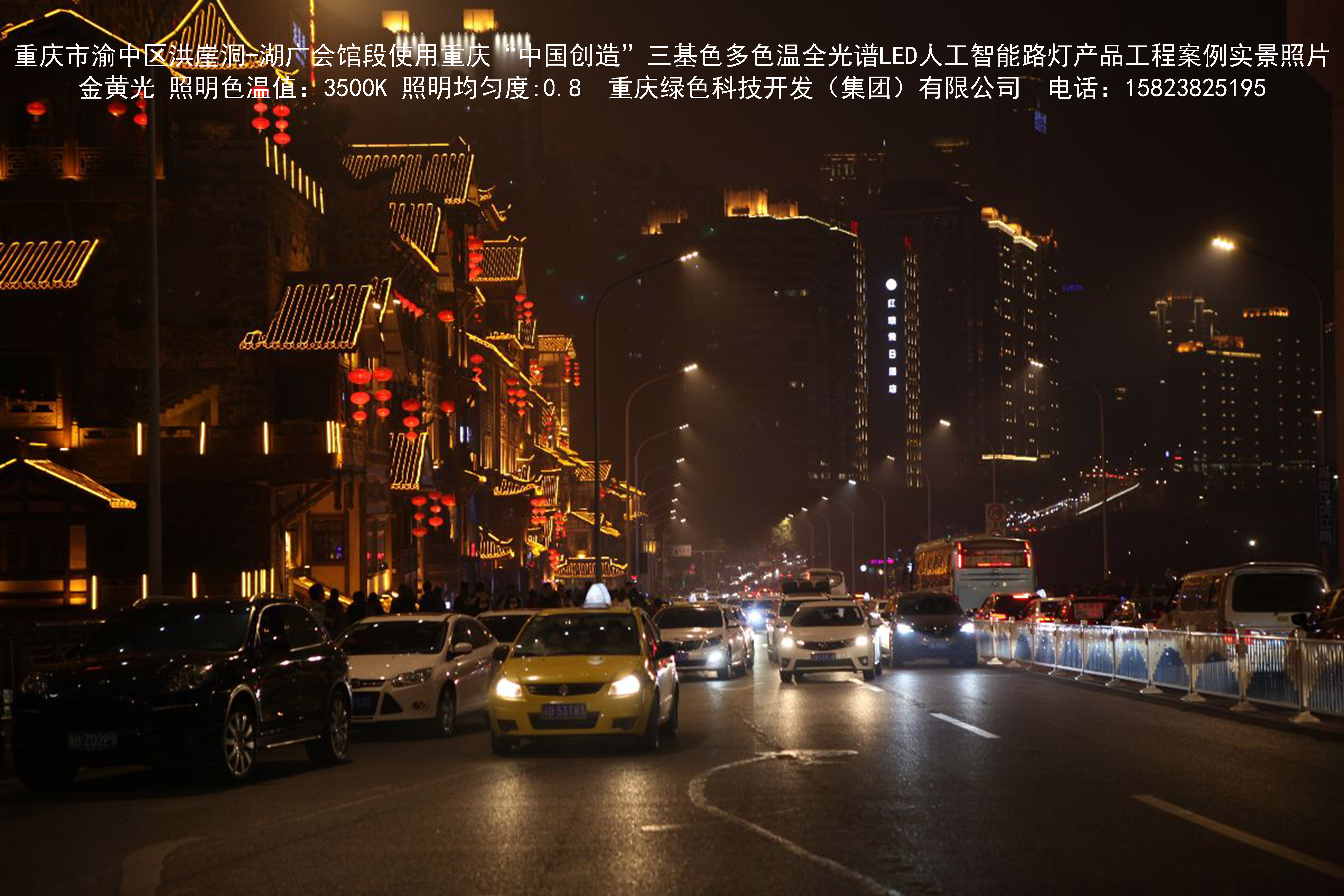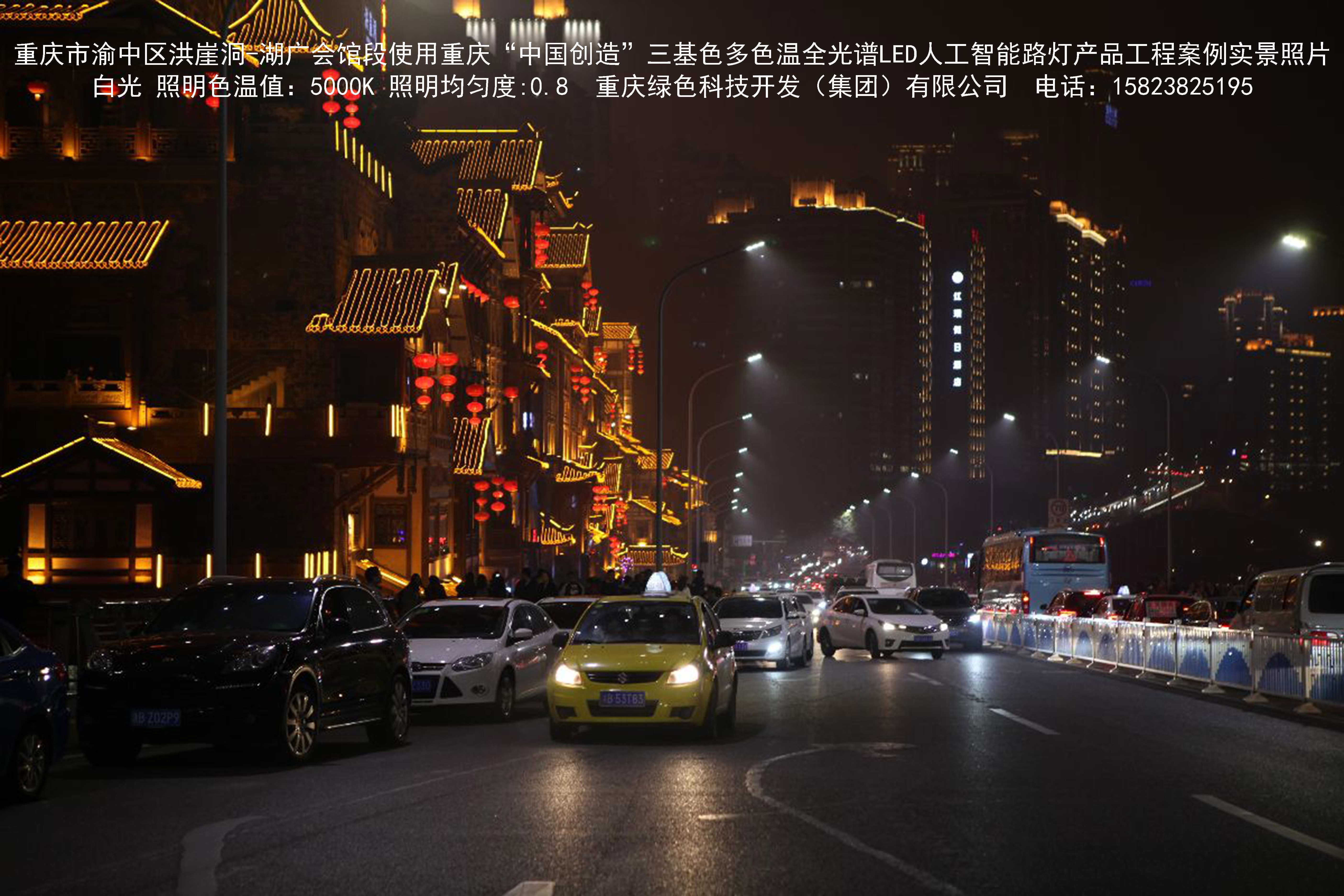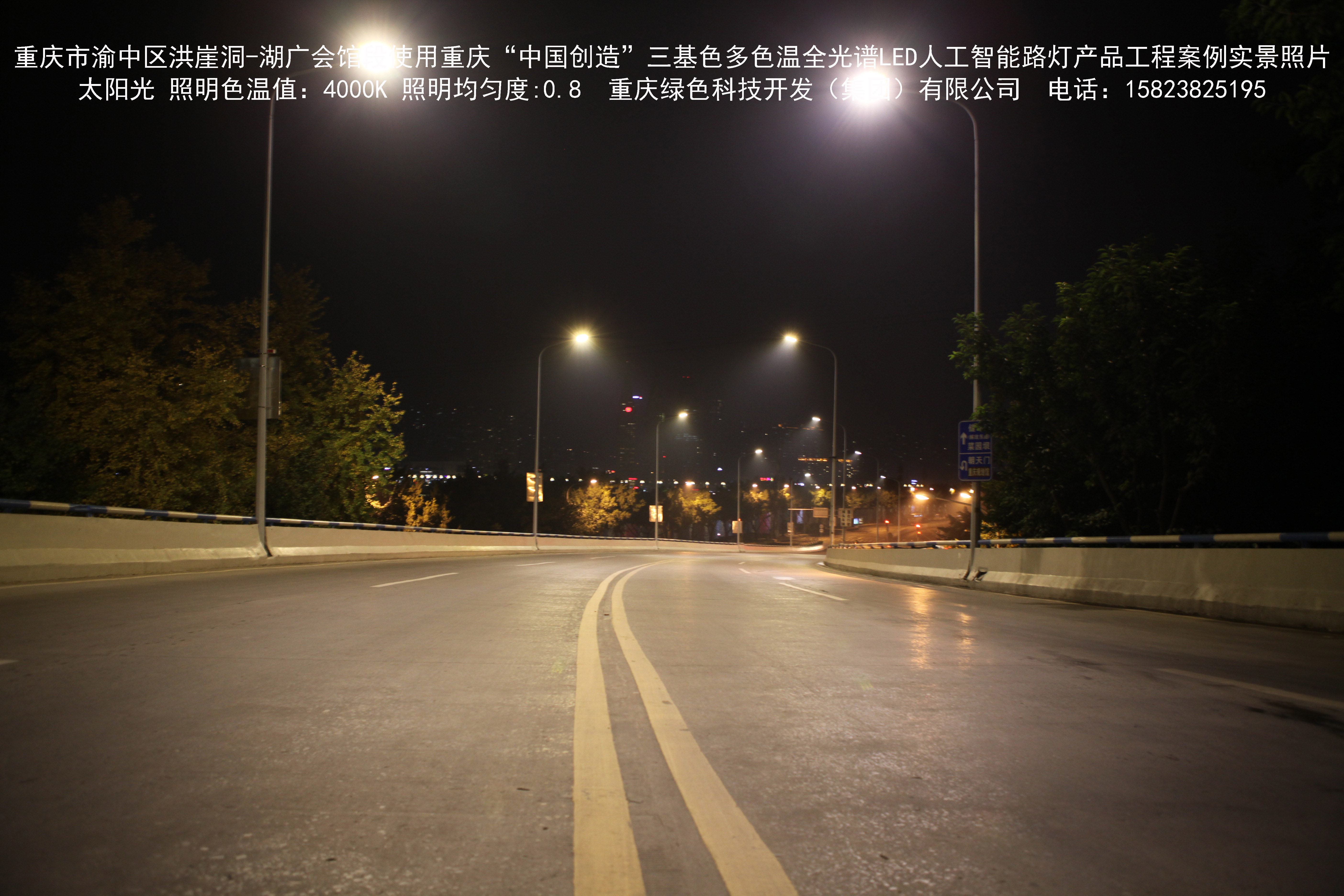 2018年12月,重慶市城市照明管理局使用我司自主研發制造的重慶“中國創造”三基色多色溫全光譜LED人工智能路燈系列產品,實施了渝中區市政設施品質提升工程。該工程已全面竣工。工程實施后,極大地提高了城市照明清晰度、燈光均勻度、舒適度。通過智能終端實現單燈感知、線纜防盜報警,與原高壓鈉燈相比,節能率60%以上,有效解決了關閉控制回路或間隔關燈方式造成的照明暗區,確保行人和車輛通行的安全,實現城市路燈照明系統的智能化管理,推進了智慧城市建設。