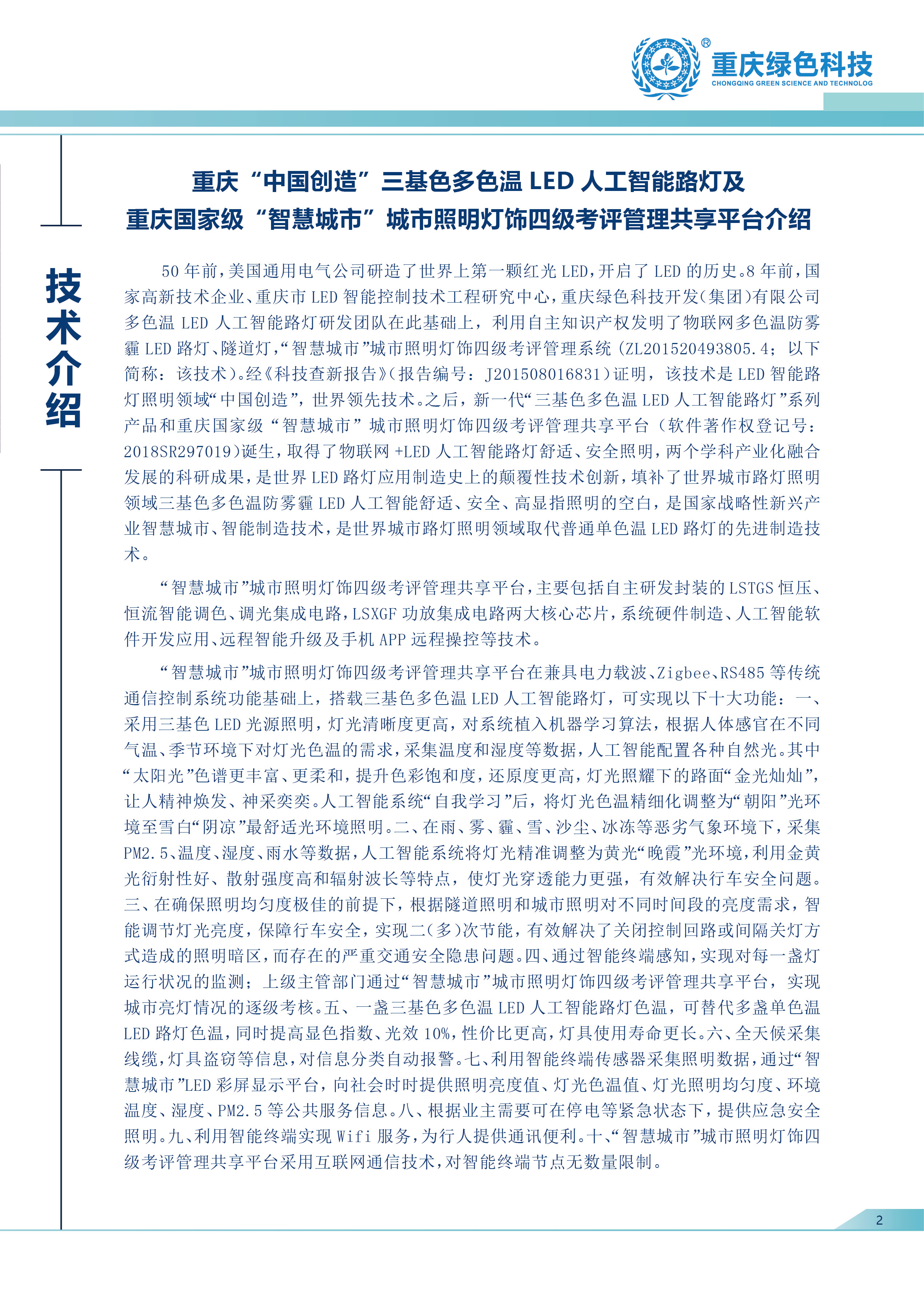 重慶“中國創(chuàng)造”三基色多色溫LED人工智能路燈、夜景燈飾系列產(chǎn)品技術(shù)介紹